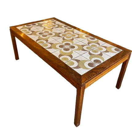 Table basse vintage, ceramique en palissandre, Danemark 1960