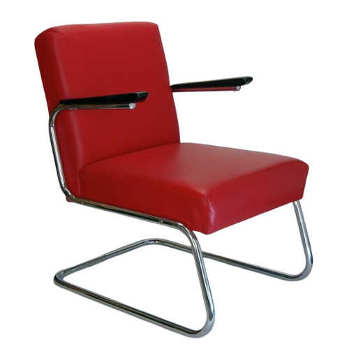 Paire de fauteuils moderniste S M 6, Maison Drabert, Bauhaus 1930, restaurés en pleine fleur cuir rouge de très bonne qualité. (ref: 2030) en vente |