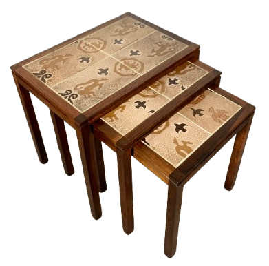 Tables gigognes danoises en palissandre et céramique par Willy Ryomgard, Mobelfabriken, 1960