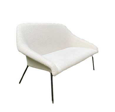 fauteuils et banquette cocoon, 1960 pieds métal laqué noir, assises restaurées